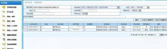 滚动鼠标滚动条,进入下面学员信息界面,找到考试信息。