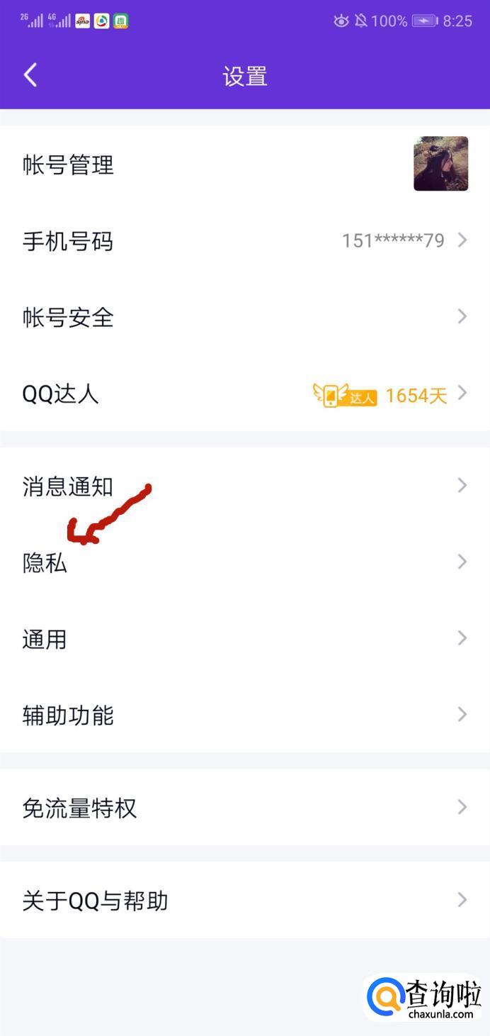 然后选择"隐私“。