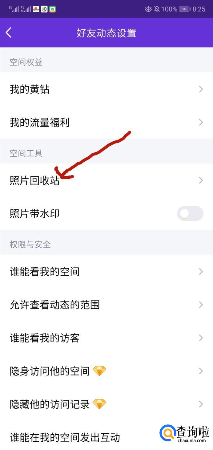 然后选择”照片回收站“。