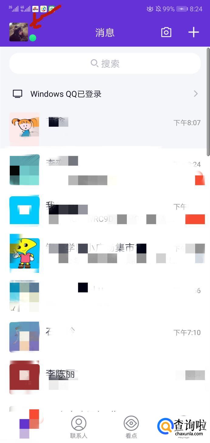 进入之后点击左上角的头像。