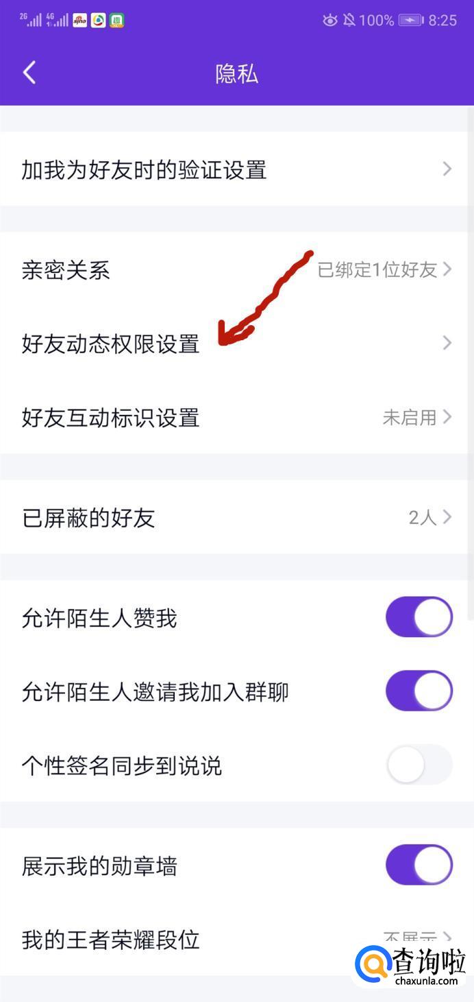 接着点击好友动态设置,如下图所示。