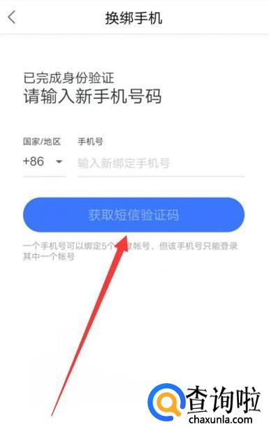 进入之后,输入新手机号码,点击获取验证码将其输入即可,如图所示。