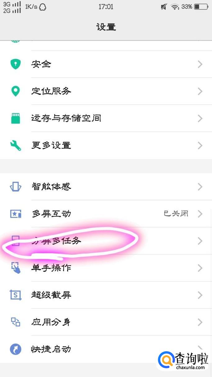 接下来,大家打开“设置”以后 ,向下滑至“分屏多任务”