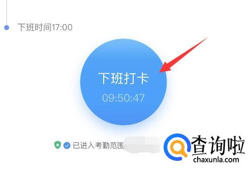 如果你已经迟到了,打卡处就会显示迟到打卡,只有蓝色标志的才是正常打卡。