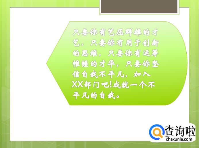 PPT的第二页我们可以输入一些句子来吸引我们新同学的眼球,让他们对我们的部门感兴趣。