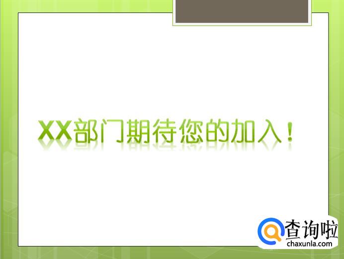 结尾我们插入版式为【空白版式】PPT,输入一些期待性的话语让大家积极踊跃地加入我们的部门。