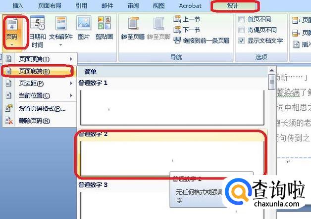 然后我们点击“页码”,并选择在页面底端插入页码。