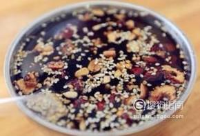 准备酱汁,葱、姜、蒜、香菜切碎,辣椒切段放入碗中,放入炸黄豆,辣椒油,醋,酱油,香油,盐,熟芝麻搅拌均匀,调成酱汁。