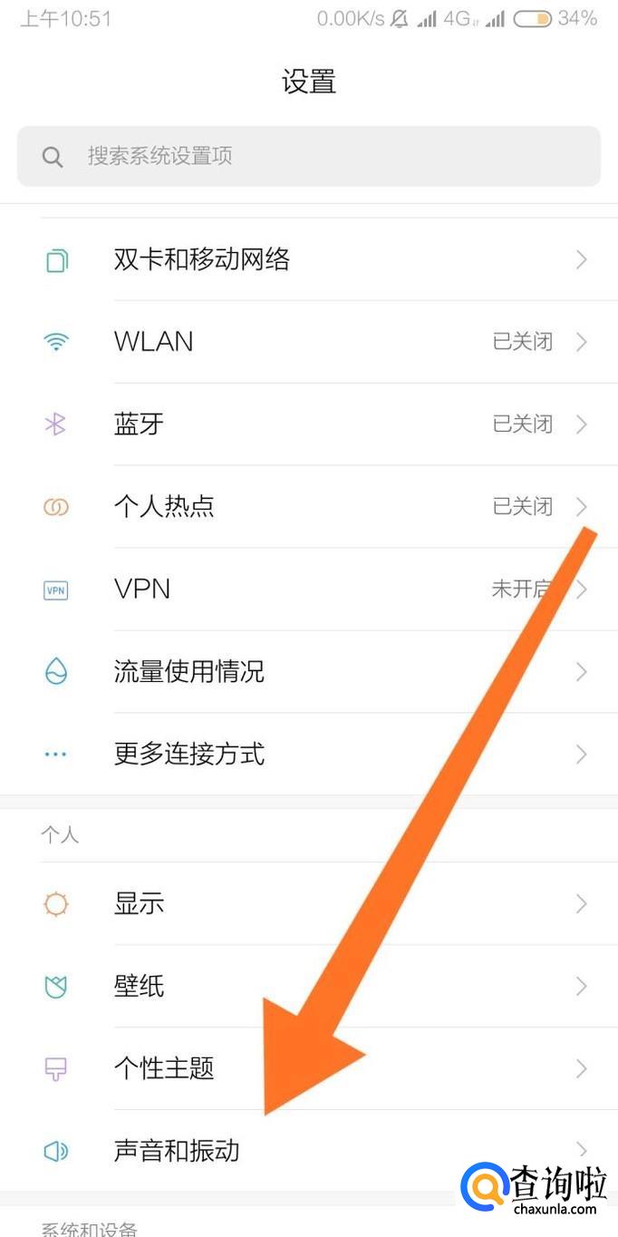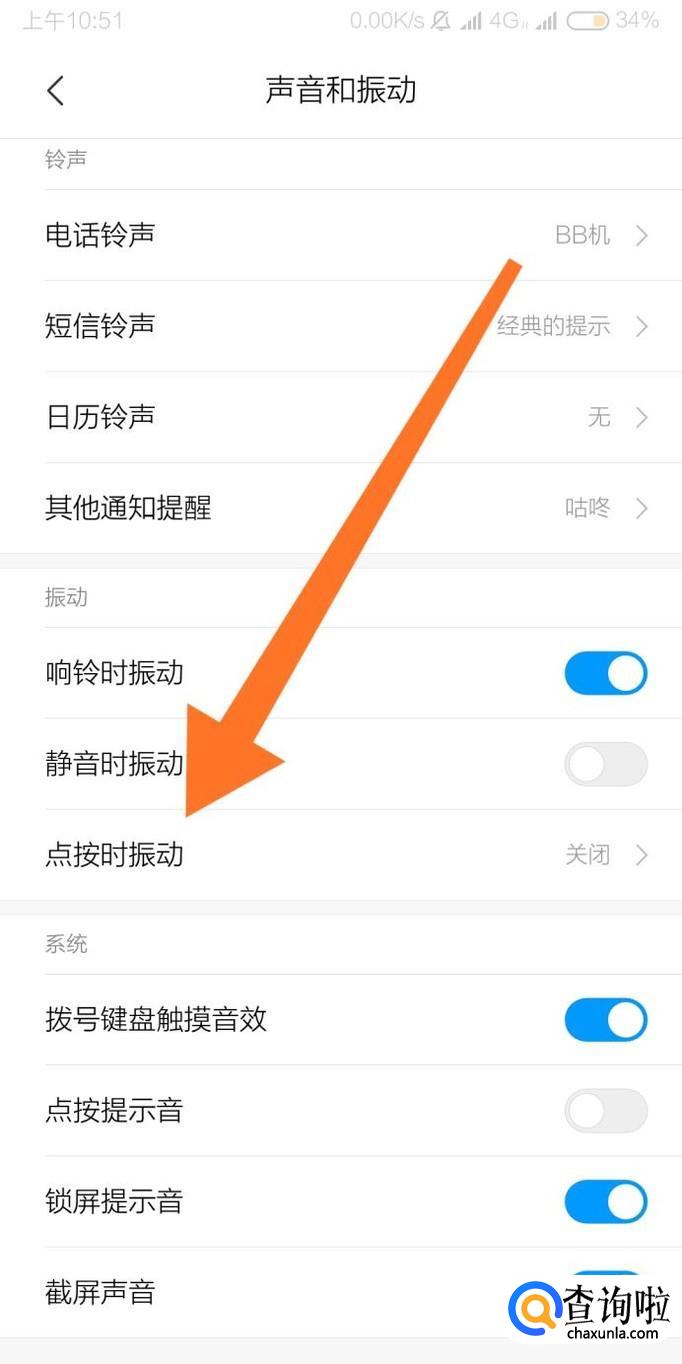 接着找到“系统”设置分组,即可关闭手机拨号键盘音效和屏幕点按提示音。