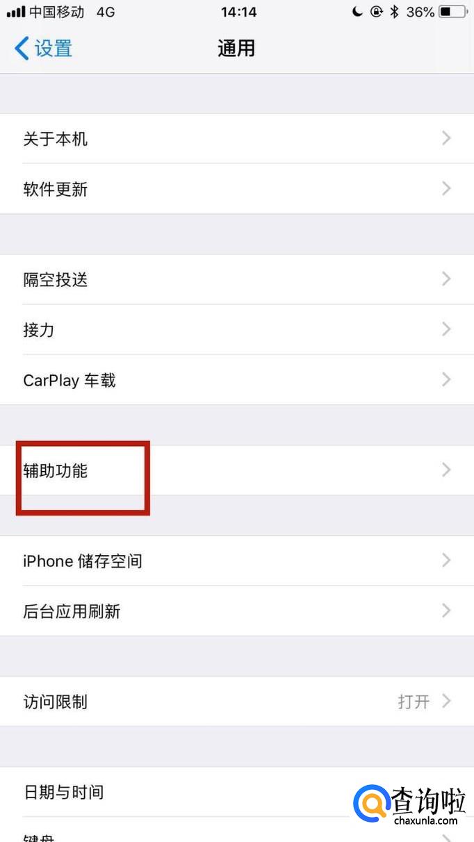 接着点击辅助功能,如下图所示。