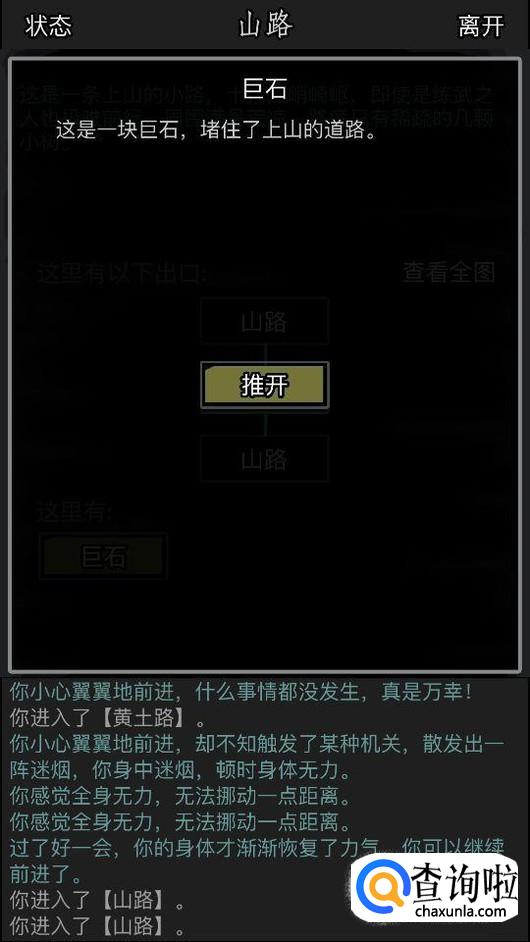 然后直接进入黄土路,沿着路一直向前走,推开巨石。