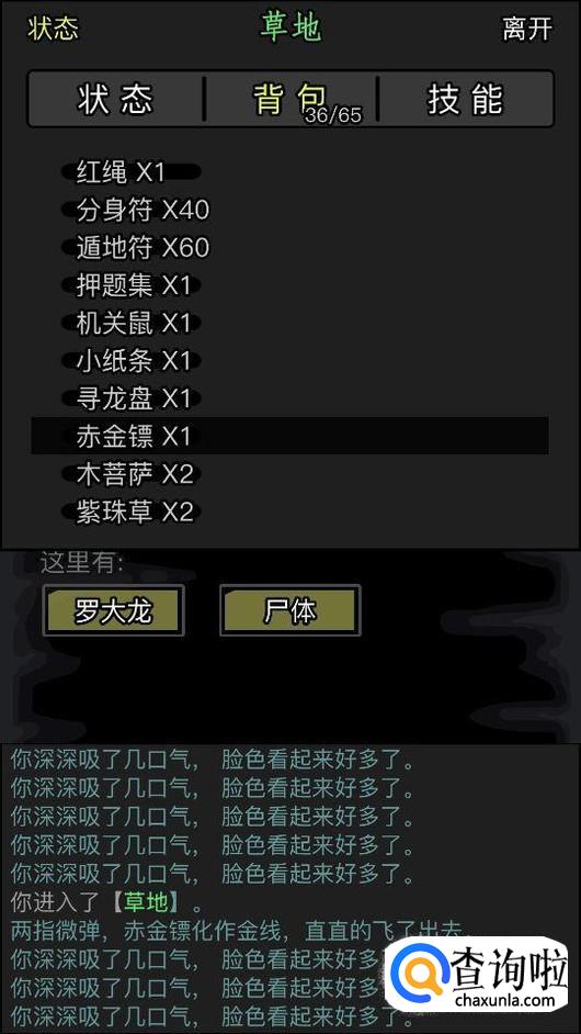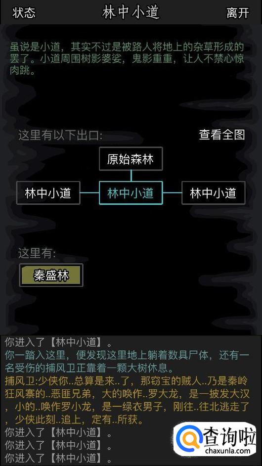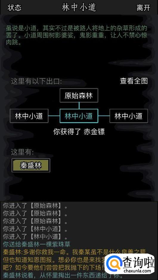 然后往上走找到紫珠草,然后给秦盛林,对话获得赤金镖。