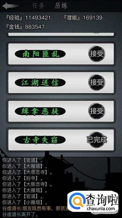 然后在走到历练那里,提交任务,我们古寺任务就做完了。