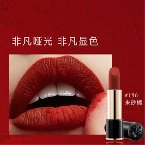 兰蔻196口红的寓意是予你美运一整年,从此人生开挂!兰蔻196口红主要呈朱砂橘色,其中橘色调较重,也可看做呈胡萝卜色;比较适合亚洲人的肤色,并且适合大多数的肤质;涂上之后会呈现一种哑光质感,并且比较显白;薄涂比较适合素颜淡妆,厚涂比较适合化妆后,而且持续时间也比较久。外观设计简约大气,外壳磨砂质地不易留指纹;按压外壳顶部,即可弹出唇膏。