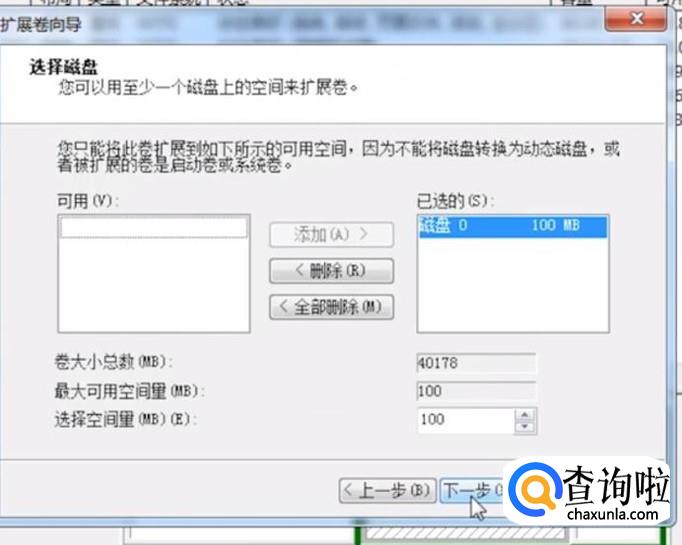 最后在扩展卷界面中将未分配的空间分配给C盘即可,如下图所示