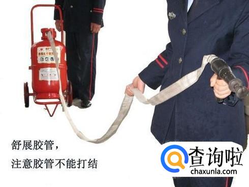 在使用推车灭火器的时候我们需要打开喷枪,取出喷带。在这一过程中,我们一定要注意喷带不能打卷,否则会容易发生危险。