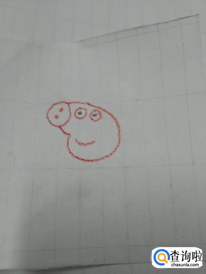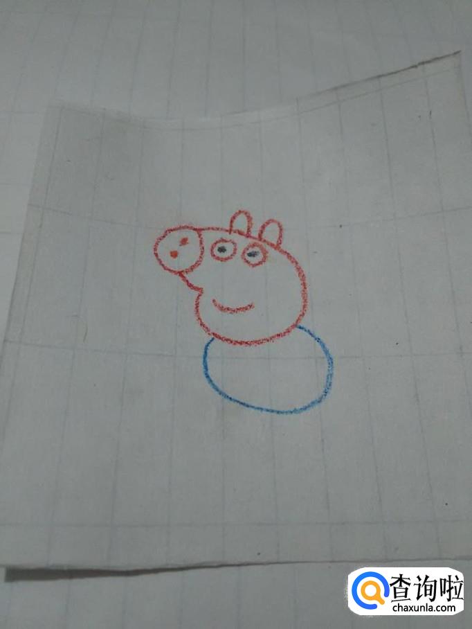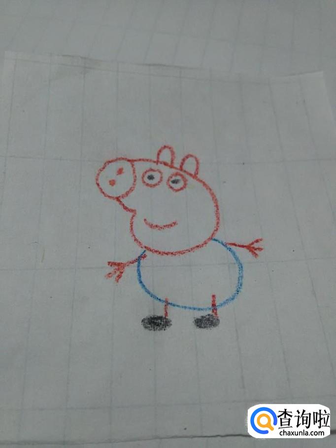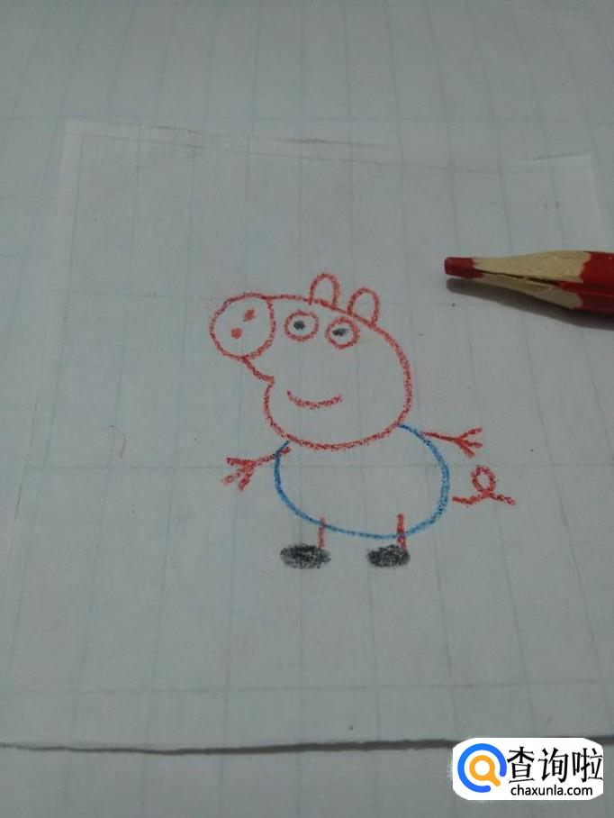 再用红笔在身体右侧画一条螺旋状的曲线,表示尾巴,小猪乔治就画完了。