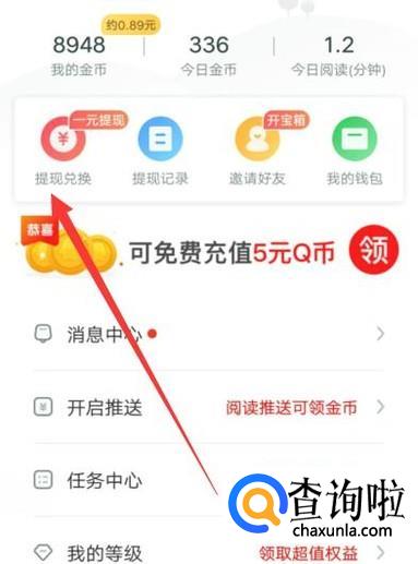 进入之后,点击“提现兑换”,进入下一页面,如图所示。