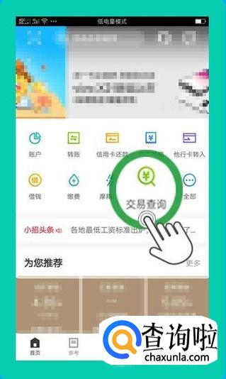 在程序的主页面点击“交易查询”,或者点开“更多”选项中找到“交易查询”进入;