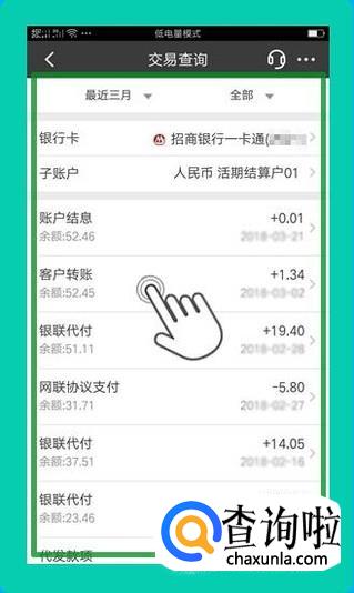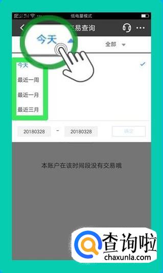 在交易查询的页面,我们点击左上角的“△”,选择查询日期;