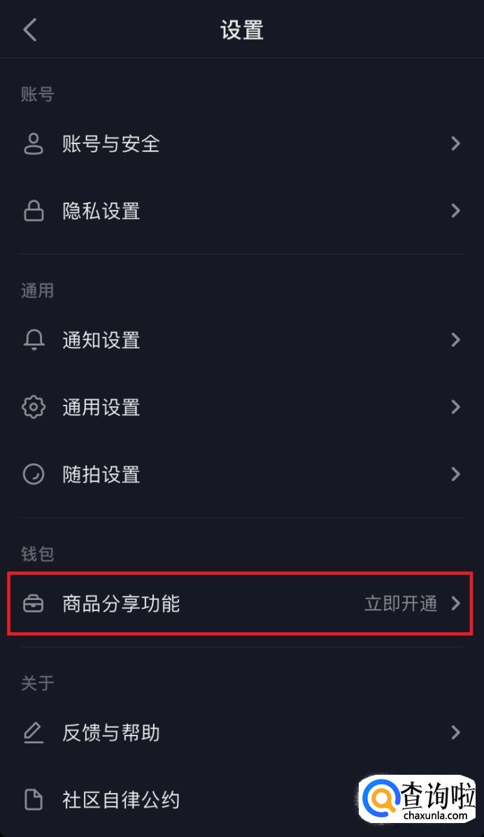 进入设置界面,找到“橱窗分享功能”,详情如下图所示。