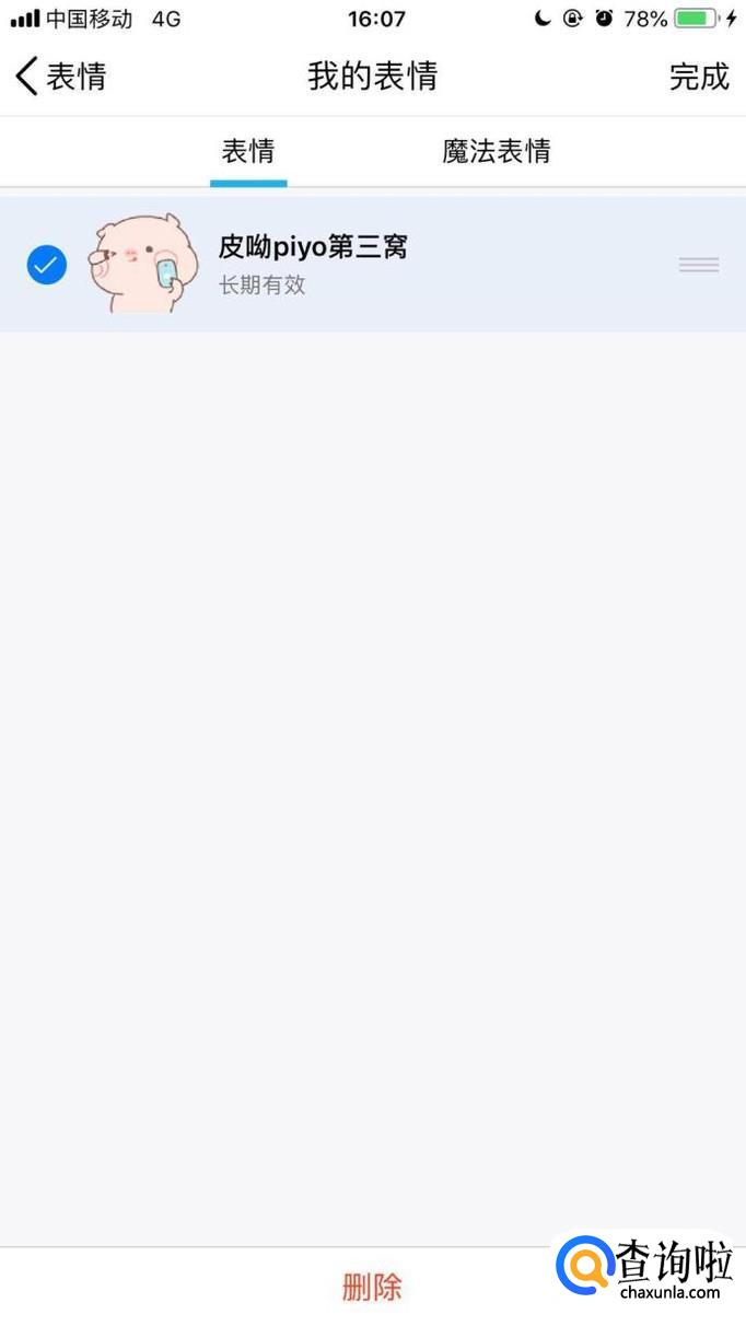 接着选择要删除的表情,并点击下方的删除就可以了。