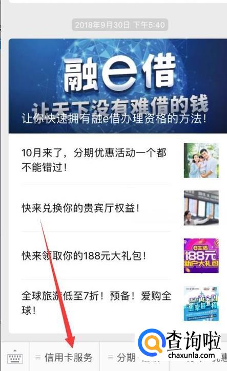 然后找到信用卡服务然后点击进入到里面去,如下图。