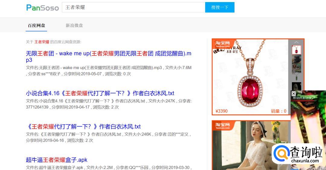 点击第一个连接进入“盘搜搜”的搜索界面,搜索你需要的东西。