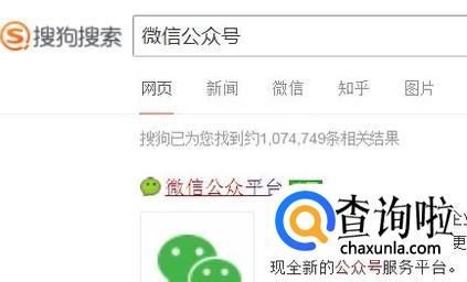 首先,在搜狗浏览器中输入微信公众号并点击回车键,如下图所示。