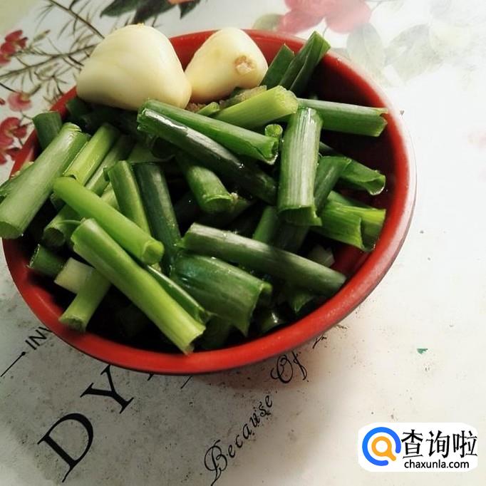 再把香葱洗干净,切成段,大蒜籽去皮切成片。