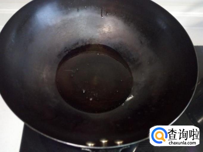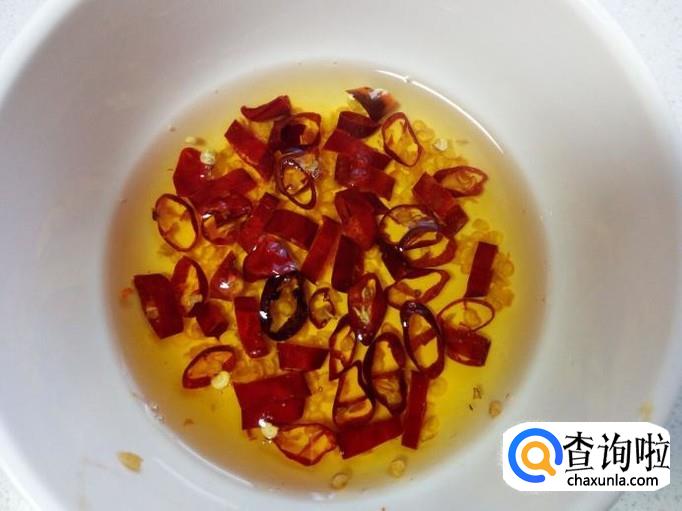 锅内放入油加热,油七,八成热时,关火。稍凉后倒入红干椒碗中,炸成辣椒油。