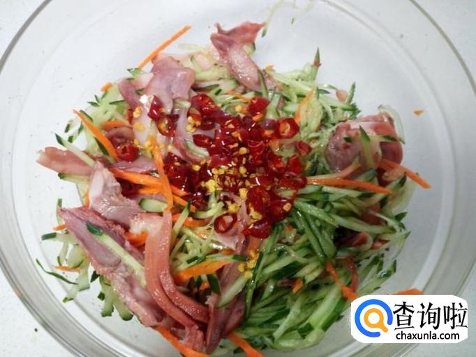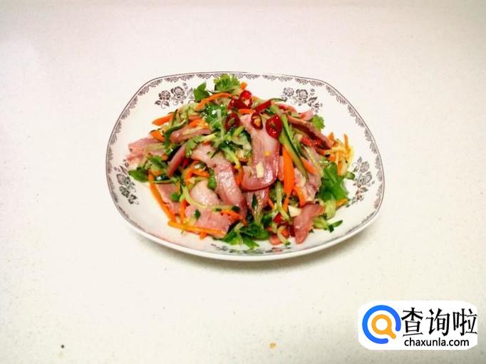 介麻油 适量 ,黄瓜 1根 ,猪头肉 150克 ,香菜 适量 ,胡萝卜 半根。