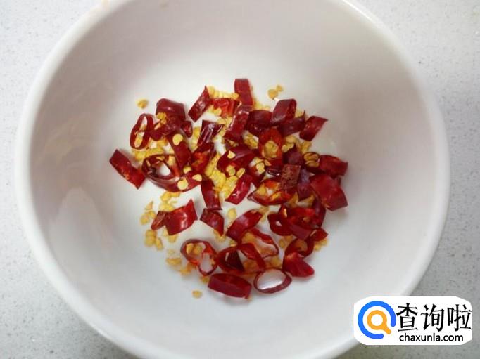 红干椒用水清洗干净,控干水分,切成小段。蒜切成末,备用。