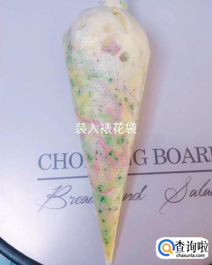 接着把搅拌好的食材装入裱花袋,如下图所示。