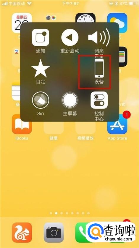 回到主界面按下屏幕中的小白点并点击设备,如下图所示。