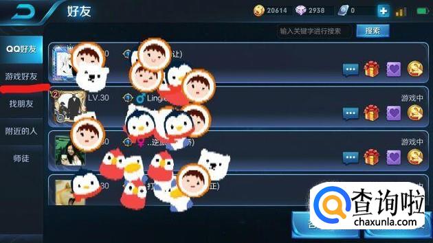 里面就会有你所有的好友,包括了qq好友和游戏好友。在这里,我们点击游戏好友。