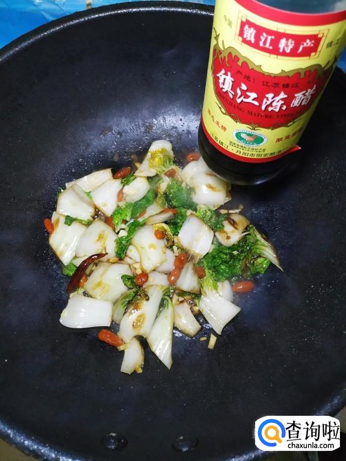 这个菜肴本身会出水,不用再加水,炒好之后,出锅前加入适量陈醋,加些陈醋可以提鲜。
