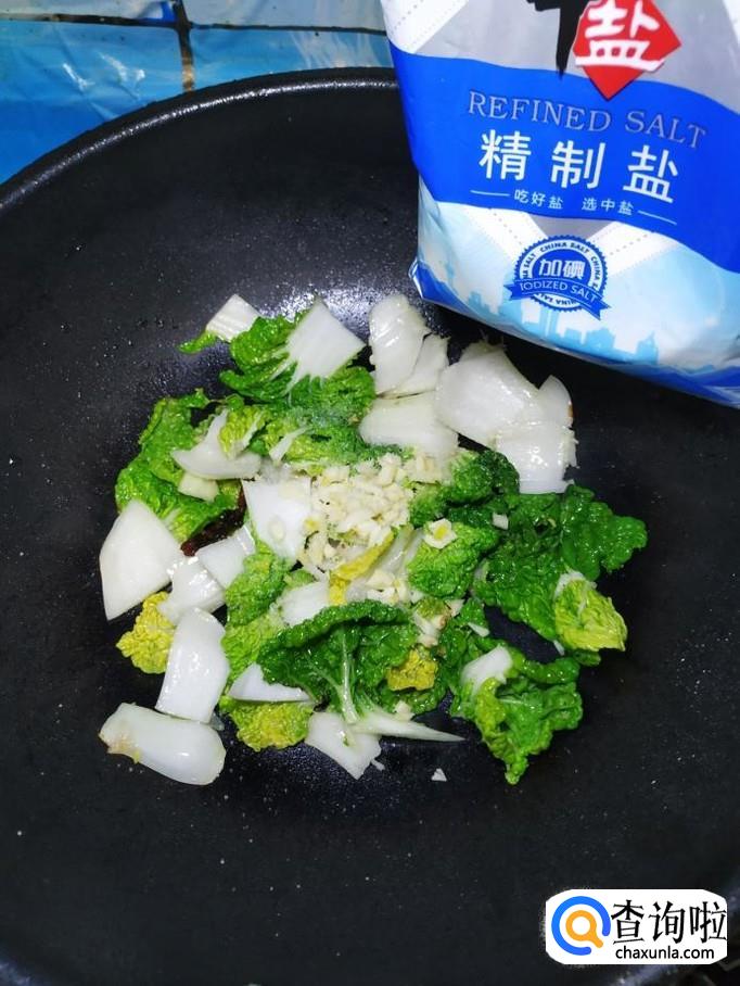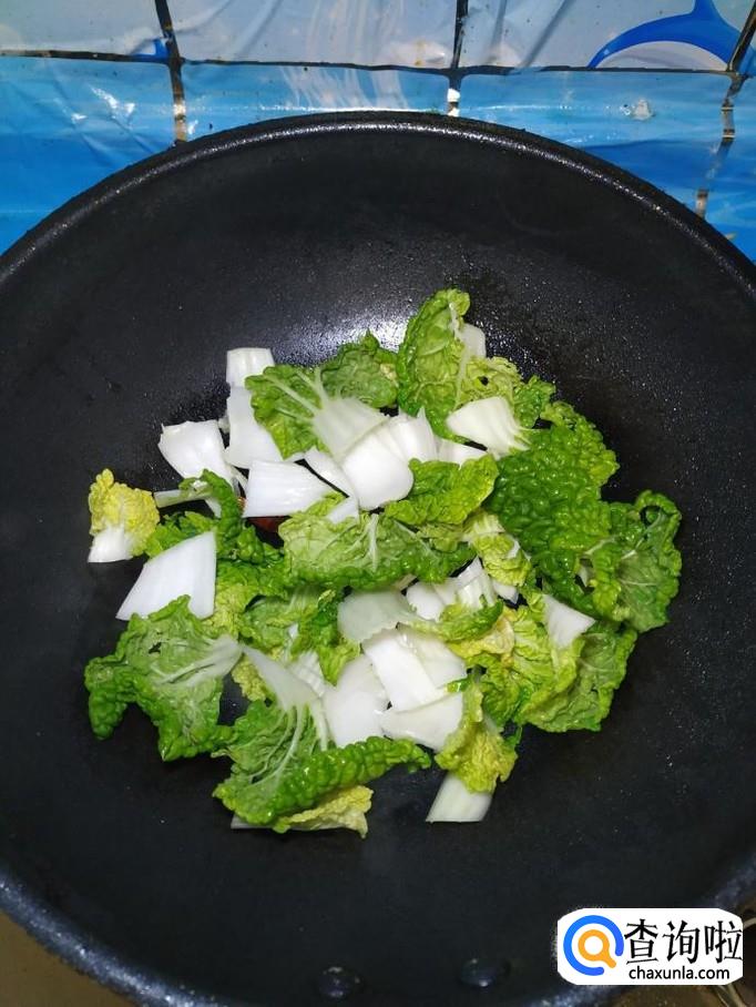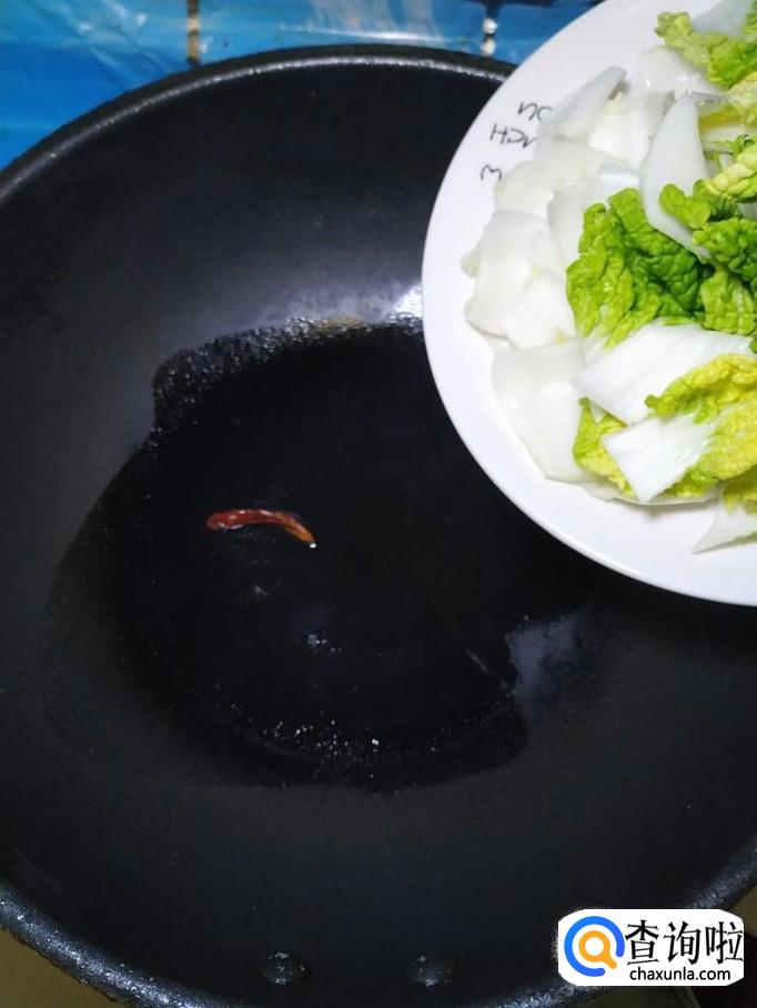 炒锅中放入适量油,油热后,放入适量干辣椒爆香,然后将乌塌菜倒入锅中,翻炒均匀,炒至表面微微变软,就差不多了。