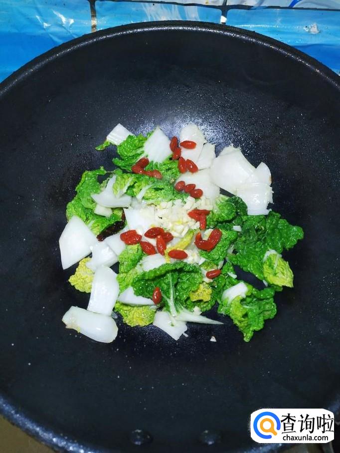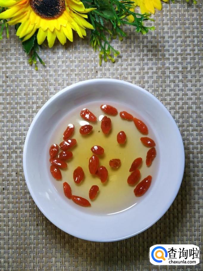 提前准备适量枸杞子,用清水泡开,将泡好的枸杞子,倒入锅中,一方面可以让菜肴的色泽更加好看,另外一方面可以增加菜肴的营养。