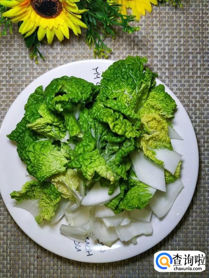 准备适量黄心乌塌菜,去根洗净后,切成片,放入盘中,一定要认真的清洗掉根部的泥沙。