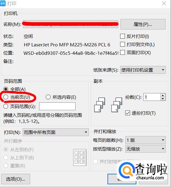 “当前页面”,只会打印当前一个页面,其他都不打印。