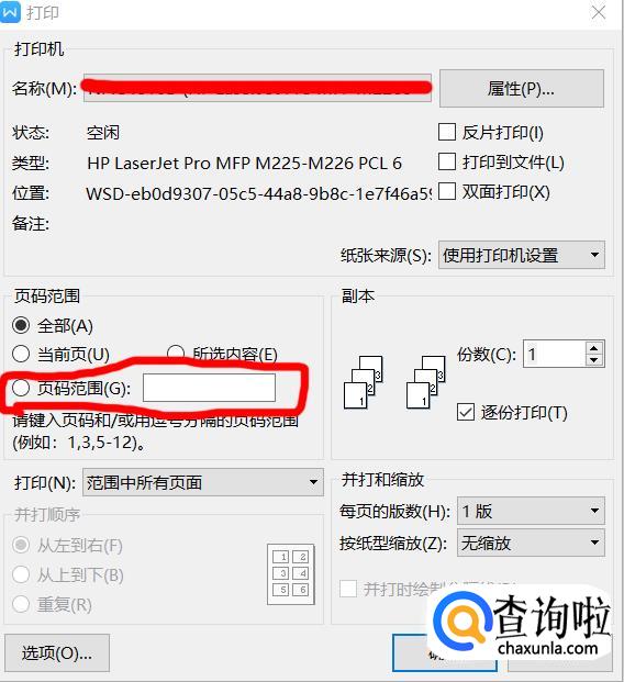 “页码范围”,就根据自己选择,再右边文本框输入想要打印的页码就可以了。