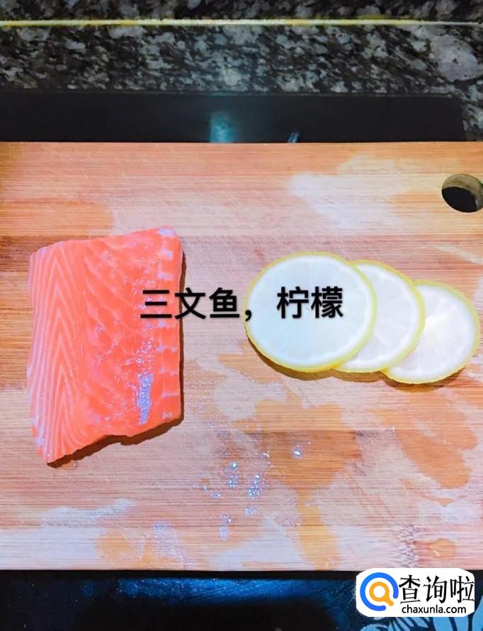 首先准备好要用到的三文鱼和柠檬,如下图所示。