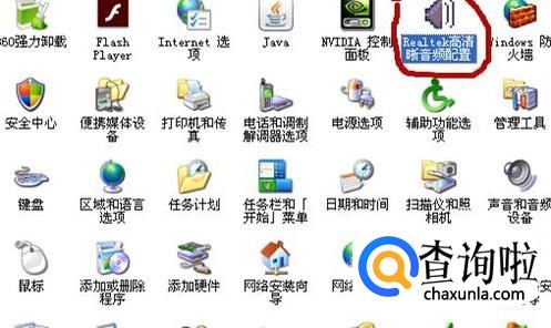 在控制面板中双击红色喇叭(realtak高清晰音频配置)。