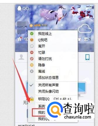 点击后会出现一个下拉列表,这时可以点击里面的“我的资料”按钮,点击它进入QQ资料设置页面中。