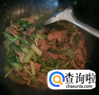 锅中加油,8分热时加猪肝爆炒30秒,然后加芹菜,翻炒2分钟左右,加盐,味精,葱蒜翻炒,起锅。