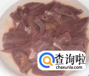 新鲜猪肝洗净切片,然后用水反复清洗,直到水变得比较清,捞起沥干。