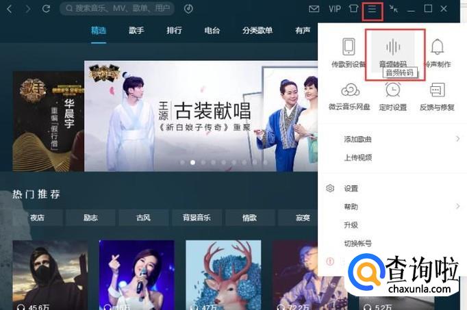 在【主菜单】中点击【音频转码】,后台就会下载音频转码插件,在下载完成后就会进入音频转码页面,如图所示。