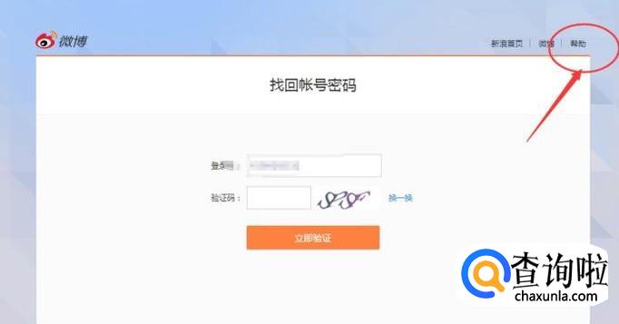 在找回账号密码页面中点击上方的【帮助】,如下图所示: