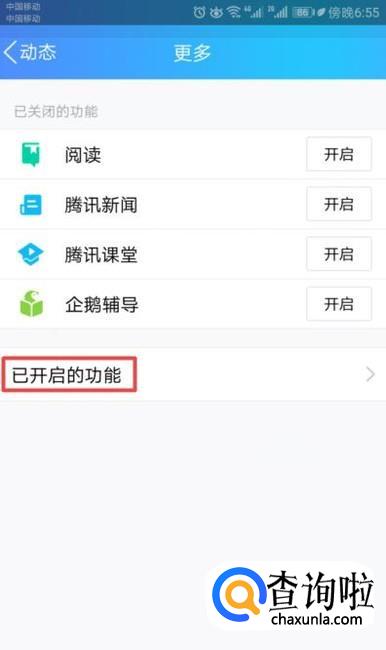 弹出的界面,我们点击已开启的功能;
